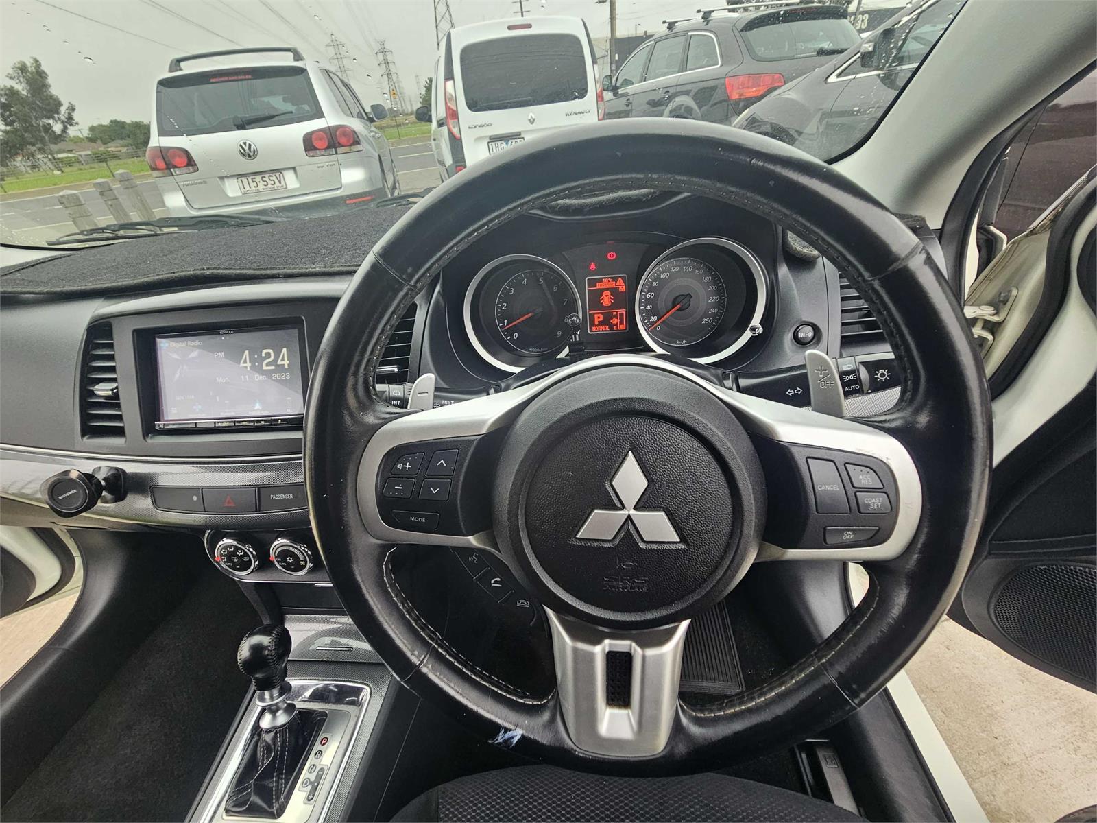 This Lancer Ralliart Sportback is not only powerful but stylish too. It features an eye-catching body kit, 18-inch alloy wheels, fog lights, and a rear spoiler that gives it a sporty edge. Inside, you'll find cloth trim, a leather steering wheel, and sport seats that combine comfort and style.