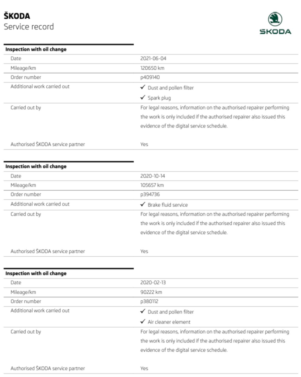 Great Service History From Skoda
