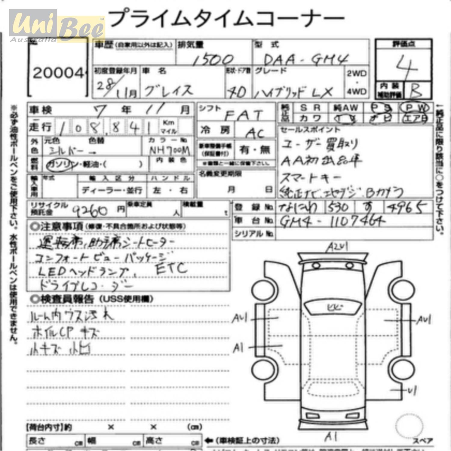Title 2016 Honda Grace Hybrid Sedan GM4