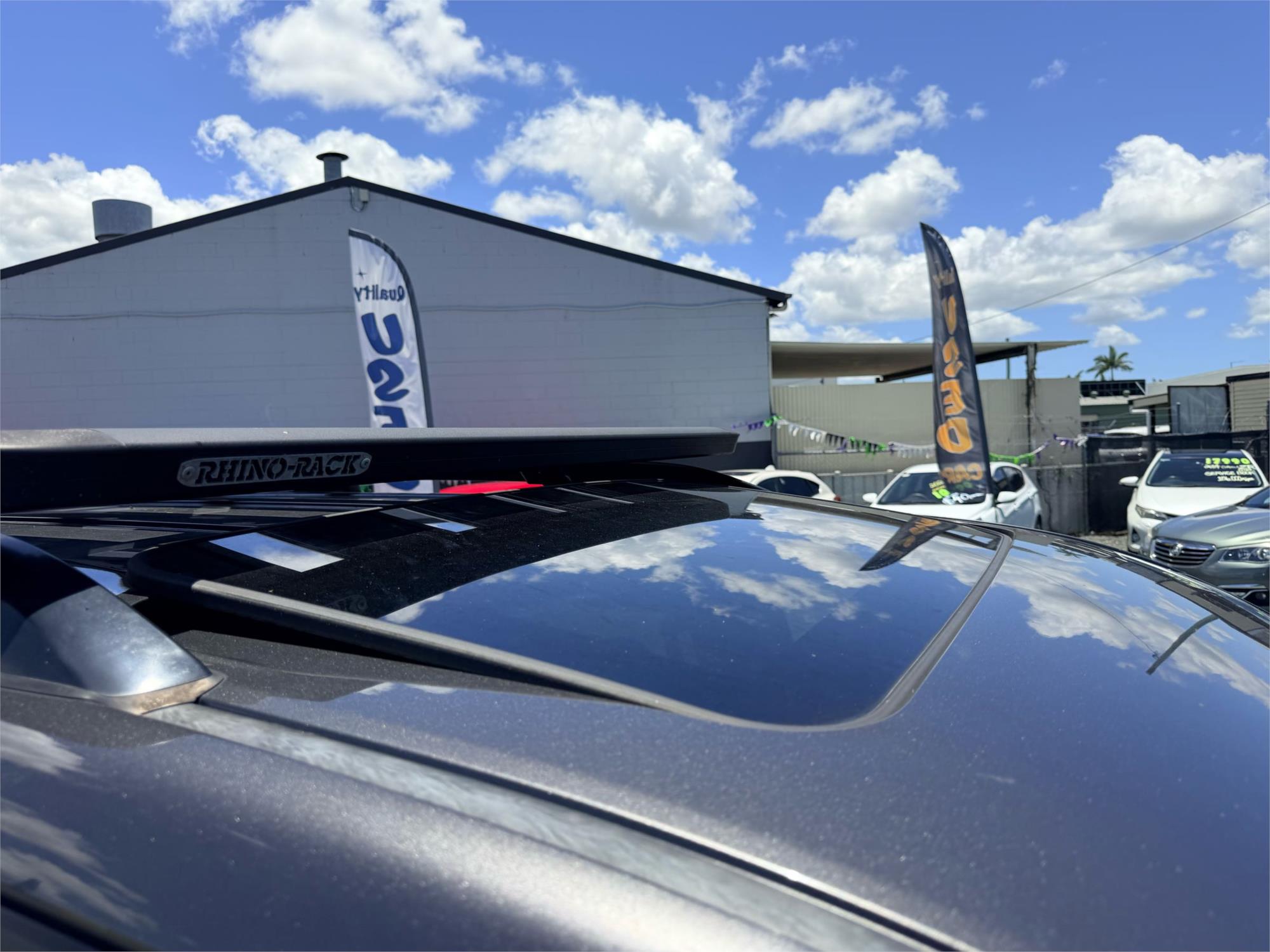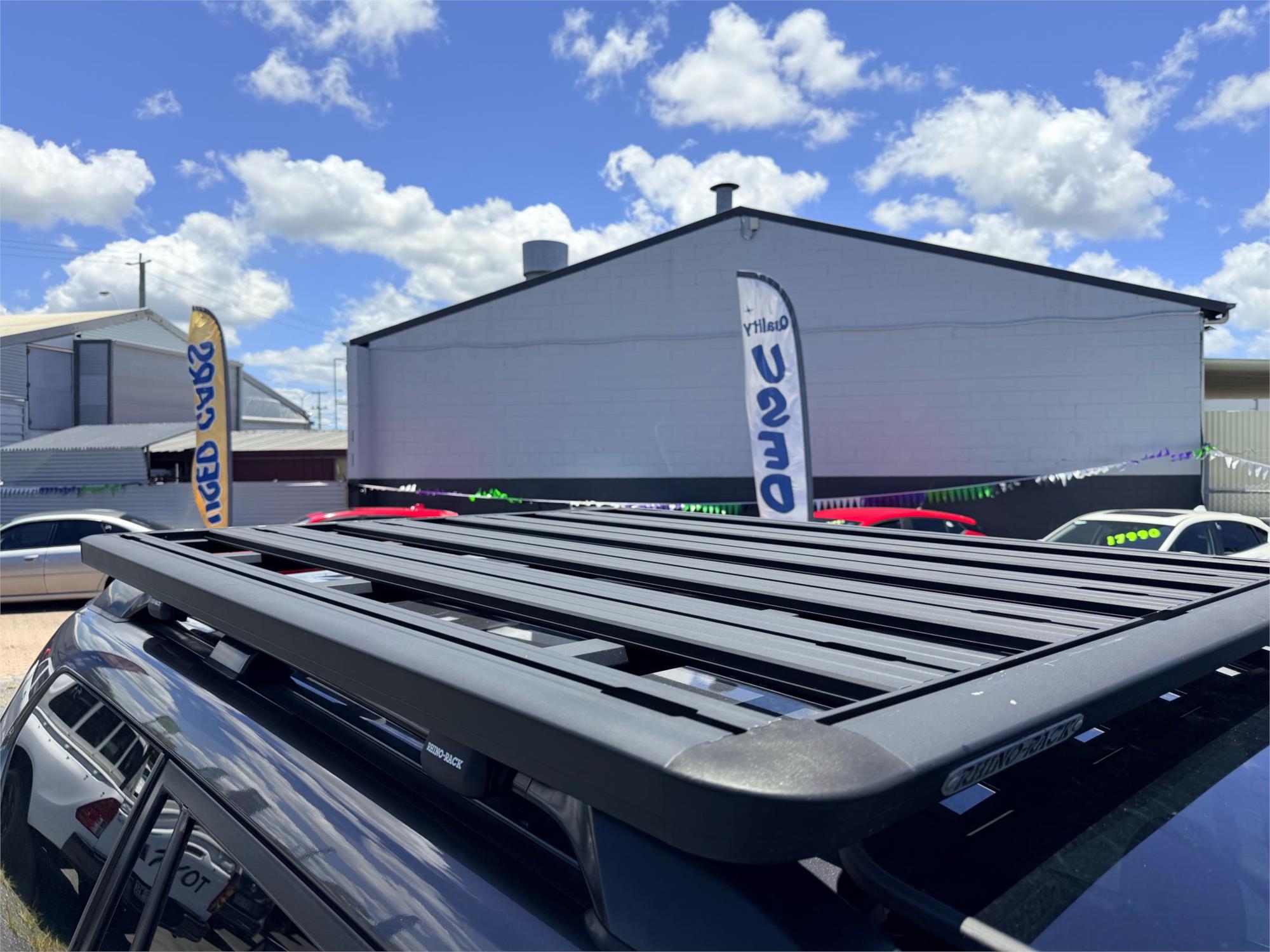 < Rhino Rack Flat Rack on the roof