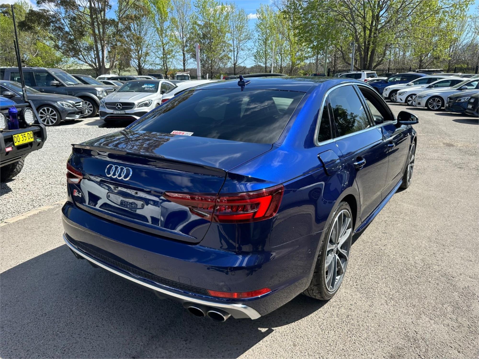 For Sale: 2018 Audi S4 B9 8W Sedan in striking Blue with luxurious Black leather interior. This sedan is a showstopper with its Diamond stitching, interior carbon inserts, and sleek design.