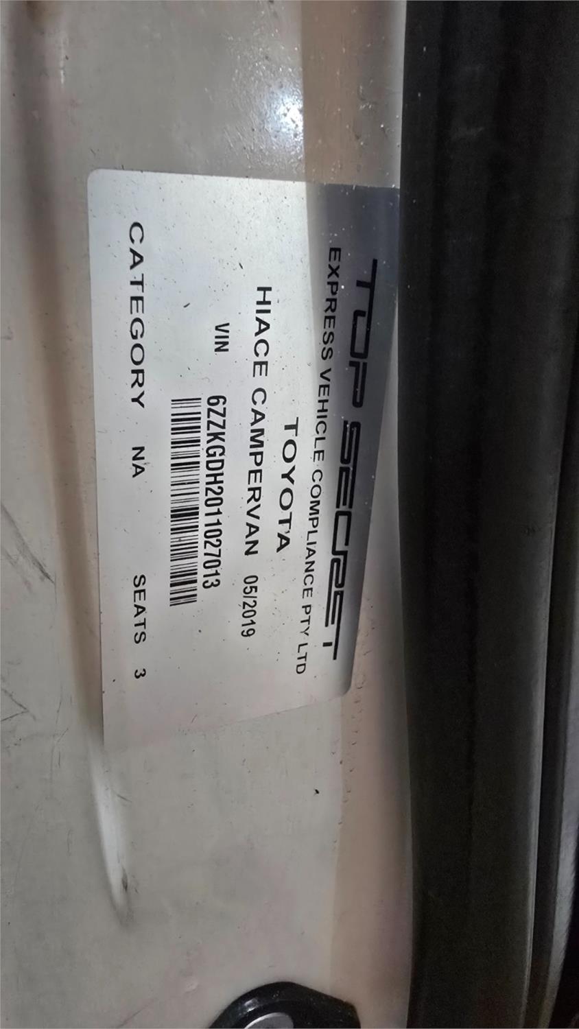 Title 2019 Toyota Hiace Panel Van GDH201