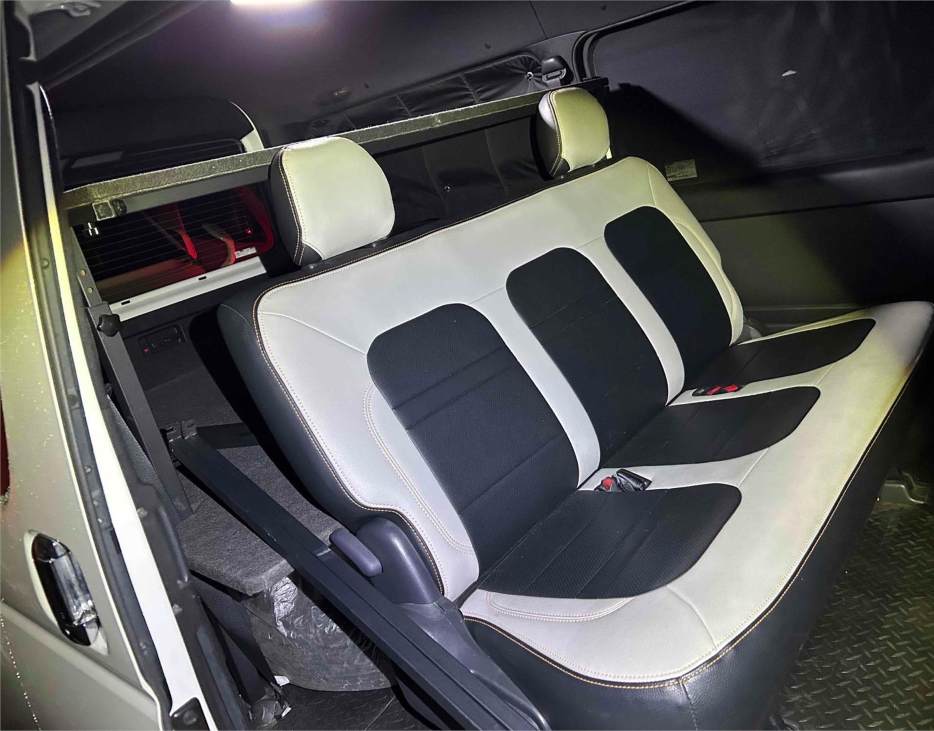 Looking for a reliable and stylish camper van that won't break the bank? Look no further than this 4WD 2021 Toyota HiAce Petrol SUPER GL DARK PRIME 2 Fitted Campervan! With aftermarket taillights and an aftermarket wheelset, this van is sure to turn heads on the road.