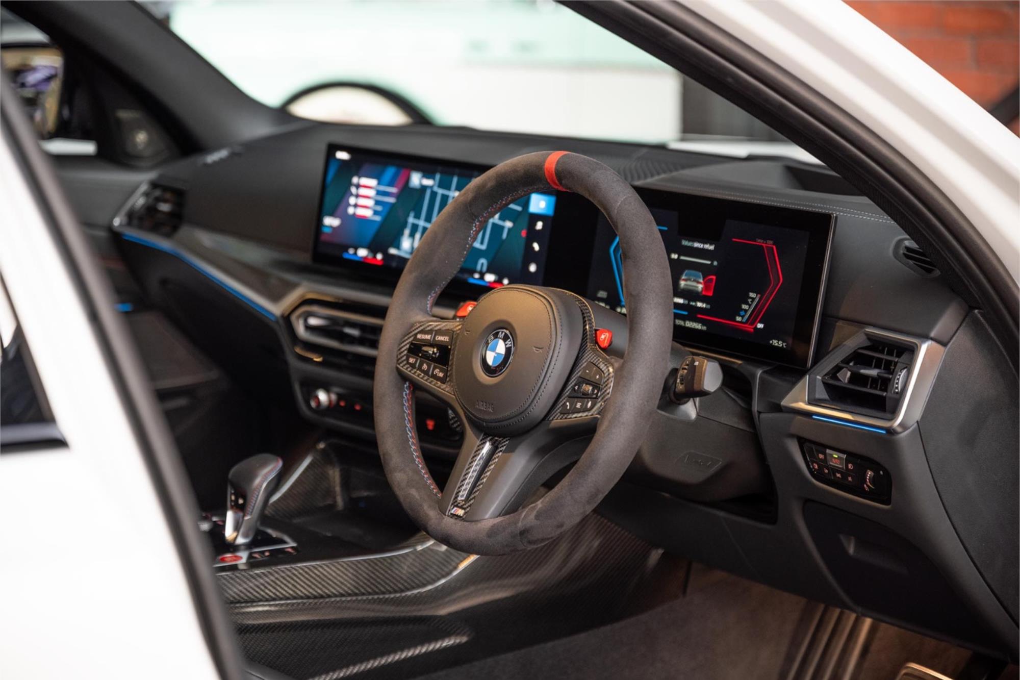 Presented in Frozen Solid White (P91), a striking BMW Individual finish that accentuates every purposeful contour of the CS’s sculpted bodywork, it is complemented by a Black Merino leather interior and extensive exposed carbon fibre detailing throughout the cabin. The result is a car that feels both brutally focused and impeccably refined.